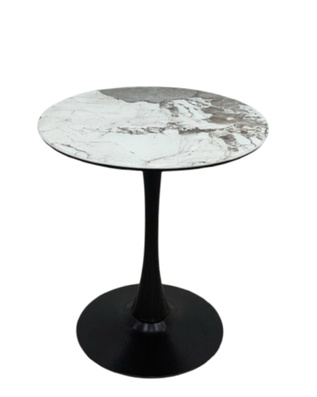 This elegant marble-style round table adds a touch of sophistication to any interior. Designed with a smooth, premium marble-effect surface, it enhances the décor of cafés, dining corners, lounges, and home interiors. The sturdy black pedestal base offers excellent stability and long-lasting durability, making it perfect for daily use. Its compact and modern structure makes it versatile enough to fit into both commercial and residential settings while maintaining a classy aesthetic.