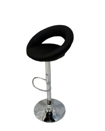 This modern bar stool brings a fresh and contemporary look to any space. Designed with a smooth cushioned seat and an open circular backrest, it offers both comfort and elegance. The sturdy chrome stand provides excellent durability, while the built-in footrest adds extra support for relaxed seating. Its adjustable height and shiny metallic base make it perfect for kitchen counters, cafés, bars, and reception areas. With its clean white upholstery and modern design, this stool enhances any setting with a touch of sophistication.
